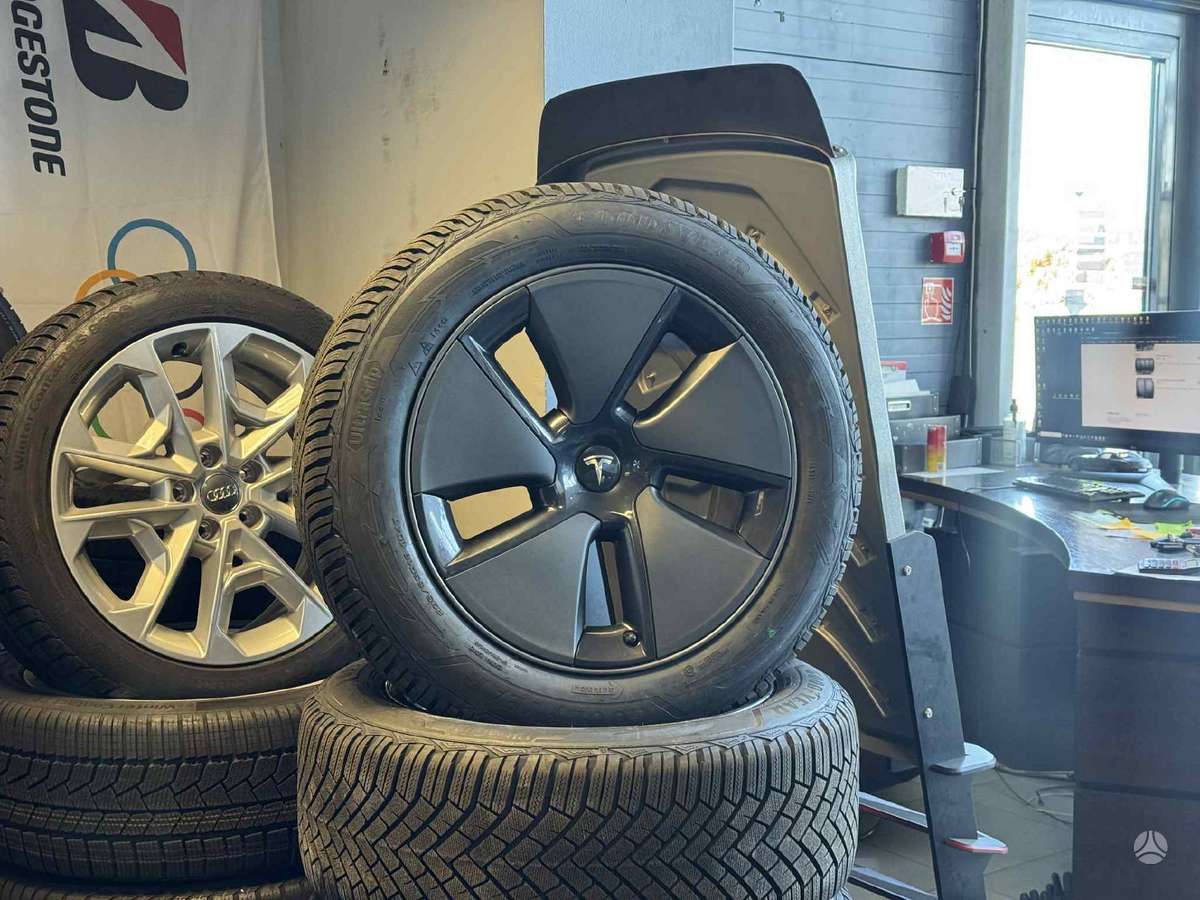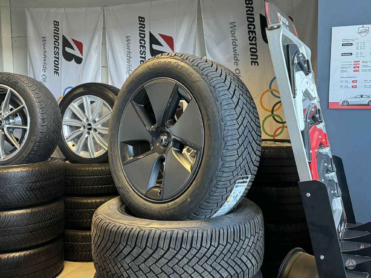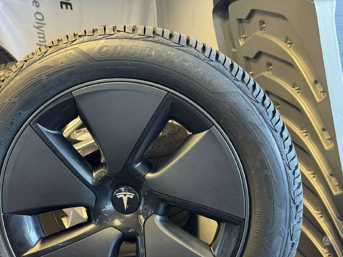 TESLA MODEL 3 R18 ORIGINALŪS RATLANKIAI SU NAUJOMIS GOODYEAR PADANGOMIS. 2025 METŲ. PADANGOS UŽDĖTOS AUKŠTESNĖS. GALIMA KOMPLEKTUOTI IR SU KITOMIS.